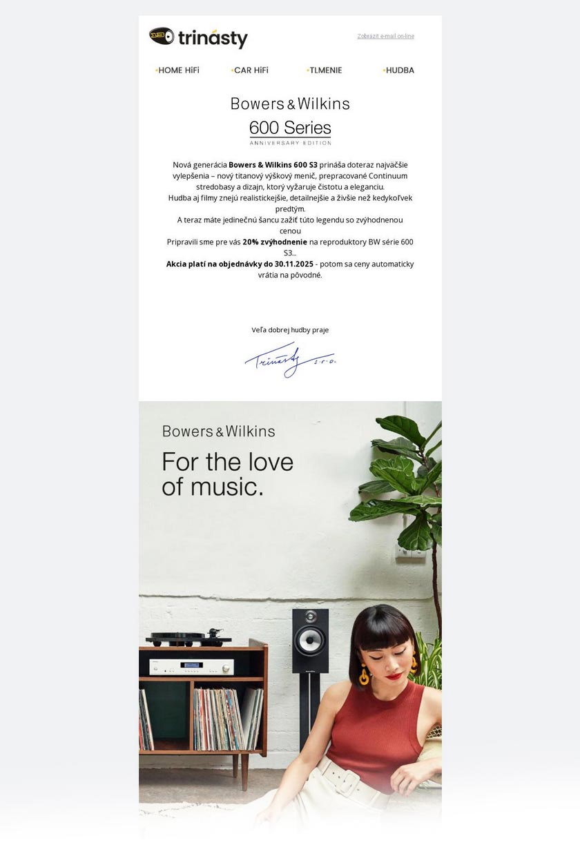 Newsletter archív – Bowers & Wilkins séria 600 S3 – legenda teraz za ceny, ktoré si môžte dovoliť