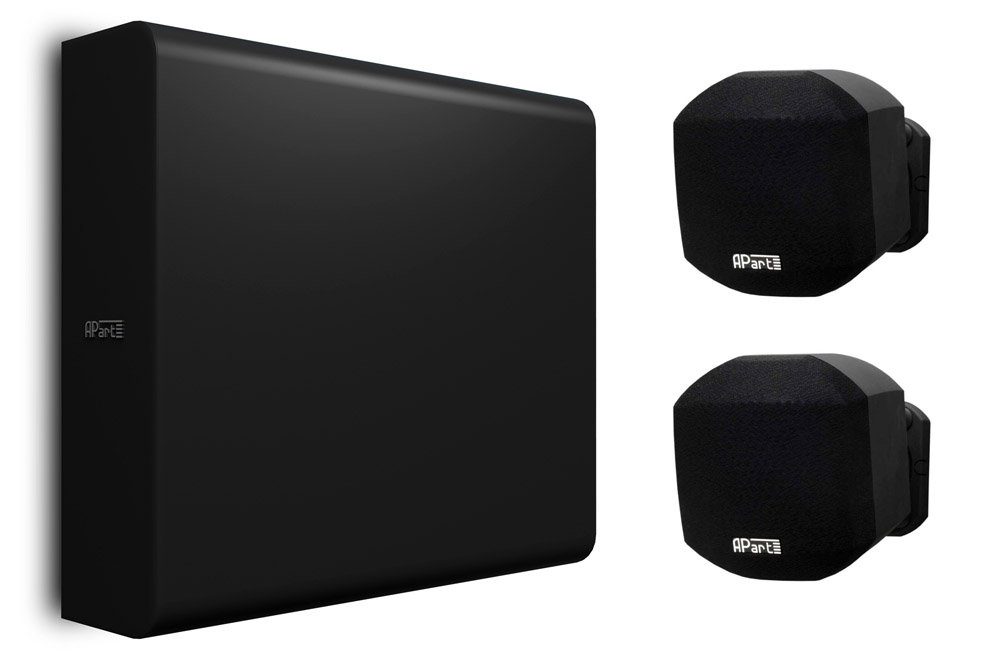- Apart Mask 2 + Sublime Stereo set 1 – sada 2 mini reproduktorov na stenu Mask 2 a pasívneho subwoofra Sublime