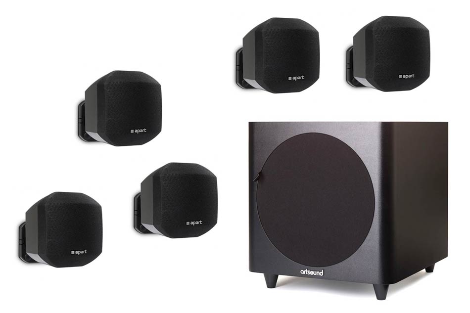 Apart Mask Mini 5.1 Set – sada 5-ich reproduktorov na stenu Mask2 a subwoofra ArtSound AS-A80.2 • Poskytuje čistý zvuk s dobrými a vyváženým basovým pásmom • Výkon reproduktorov MASK2 50 W pri 8 Ohmoch s frekvenčným rozsahom 120 Hz – 20 kHz • Výkon subwoofera ArtSound AS-A80.2 200 W s frekvenčným rozsahom 40 Hz – 150 Hz • Súčastou reproduktorov je držiak pre uchytenie na stenu Farebné prevedenie: Čierne • Cena za SET