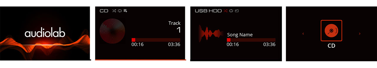 - Displej ponúka živé zobrazenie informácií vrátane systémových nastavení, formátu, priečinka, detailov skladieb a ďalších údajov