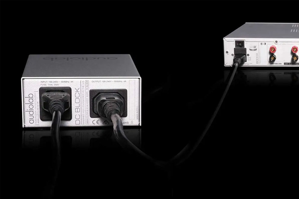 - Audiolab DC Block – blokátor jednosmerného prúdu, ktorý dodáva vášmu zosilňovaču „čistý“ výkon a zároveň znižuje šum transformátora, vďaka čomu budete počuť viac hudby a menej elektroniky