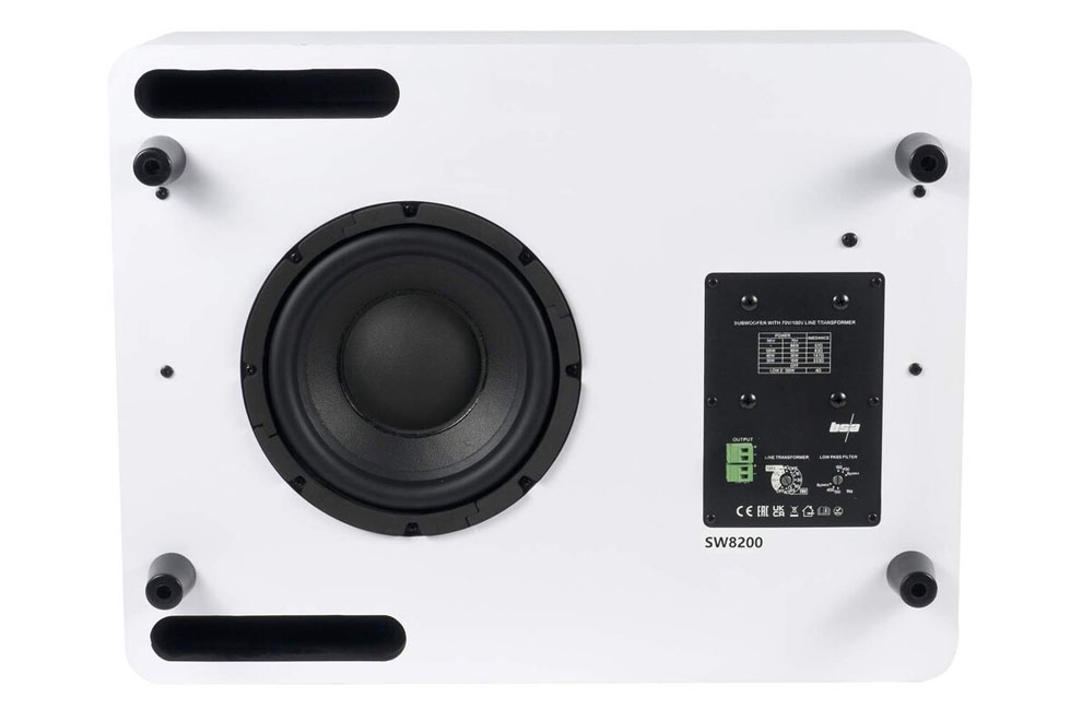 BS Acoustic SW8200 – 8″ inštalačný subwoofer pre 100V rozvody s možnosťou nízkoimpedančného zapojenia • Kompaktné rozmery • Osadený 8″ meničom • Učený pre 70/100V rozvody s možnosťou nízkoimpedančného pripojenia 4 ohm • Prepínateľný Low pass filter • Nastavenie príkonu 120/60/30W pre 100V • Vhodný aj na inštaláciu na stenu • Farebné prevedenie: White • Cena za KUS