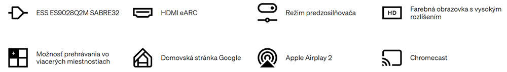- Možnosť Multiroom – kompatibilný so systémami Google Home, Apple Airplay a Roon Multiroom