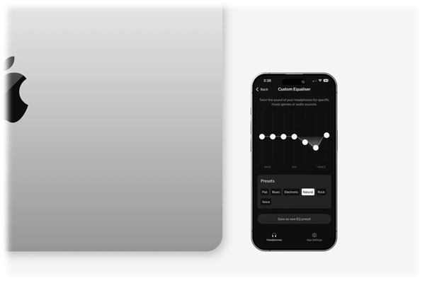 - Prispôsobiteľný zvuk – Možnosť individuálneho prispôsobenia zvukového profilu prostredníctvom aplikácie Melomania Connect a 7-pásmového EQ.