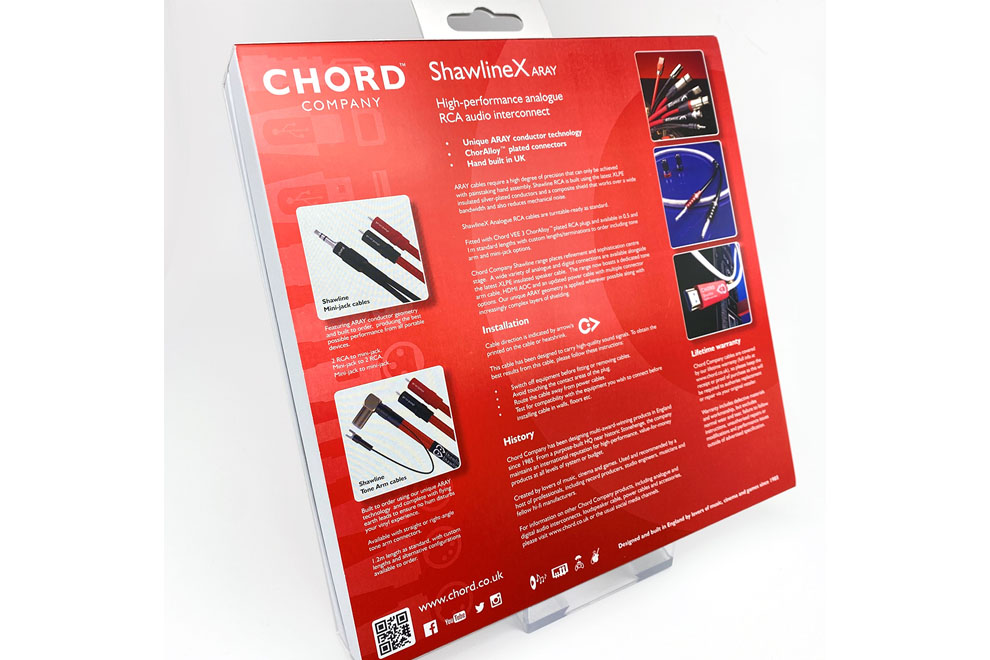 Shawline používa konfiguráciu vodičov ARAY, vďaka ktorej sa okamžite veľmi líši od väčšiny ostatných káblov. Rovnako ako ďalšie káble s Aray konštrukciou – pre signál a spätný tok používa identické vodiče. Paralelne s nimi je vodič ARAY. Shawline Analogue používa postriebrené vodiče s izoláciou PTFE a sú obklopené dvojvrstvovým opletením s vysokou hustotou a fóliovým štítom, aby sa minimalizovalo vysokofrekvenčné rušenie. Dizajn je ovplyvnený špičkovými digitálnymi káblami, ktoré sme vyvinuli, najmä stupňom hudobnej súdržnosti, ktorý si zakúpili pre systémy. Plášť z PVC, ktorý pomáha znižovať mechanický hluk, vysokofrekvenčne efektívny oplet s vysokou hustotou a fóliový kombinovaný štít, aby mohli pracovať podľa svojich najlepších schopností. Široký sortiment káblov počnúc analógovými a digitálnymi RCA, Jack, BNC a XLR káblami a reproduktorové káble. Všetko s označením Chord Shawline…
