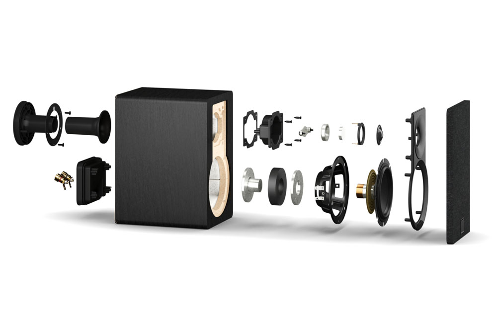 - Zadný bassreflex port s technológiou „dual flare“ optimalizuje prúdenie vzduchu, minimalizuje turbulencie a zaisťuje čistejšie a hlbšie basy