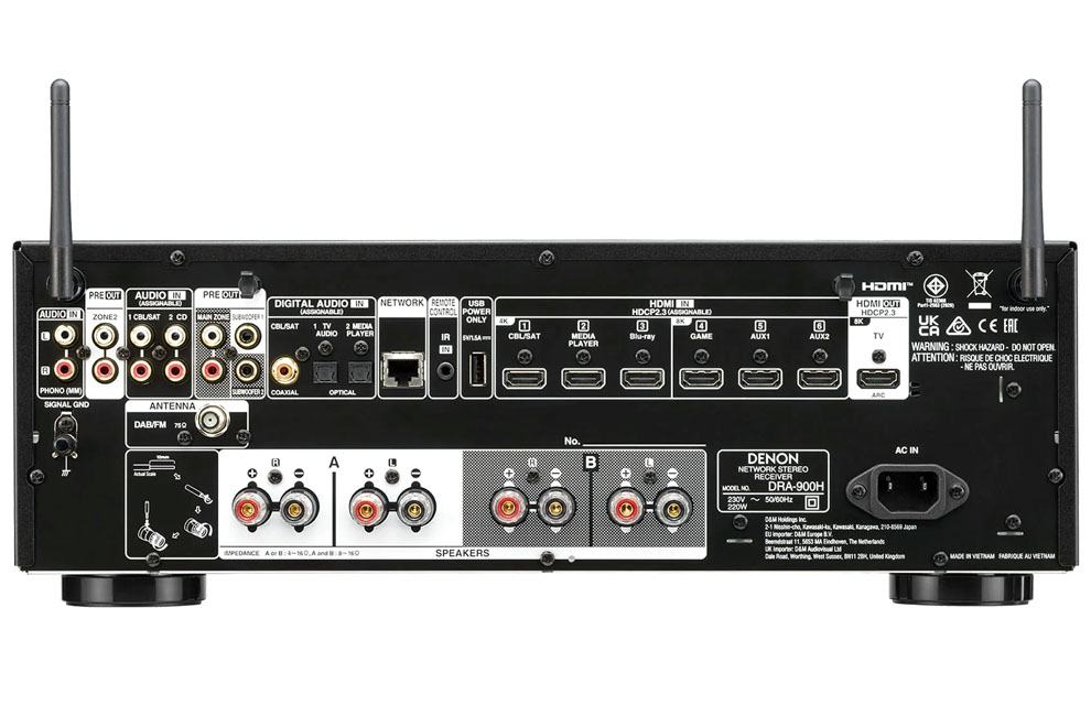 - Denon DRA-900H – 2.2-kanálový sieťový stereo WiFi receiver s podporou 8K videa