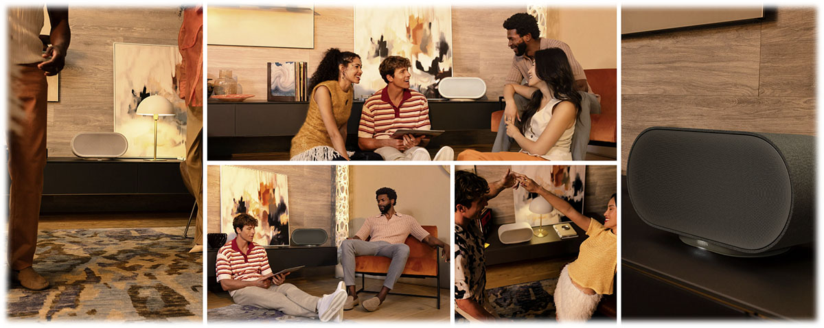 - Home 200 — Najmenší a najkompaktnejší model. Ideálny na stolík alebo poličku v menších priestoroch. Poskytuje plnohodnotný stereo zvuk s virtuálnym Dolby Atmos. Najlepšia voľba pre jednoduché denné počúvanie alebo ako druhý reproduktor v multiroom systéme.
