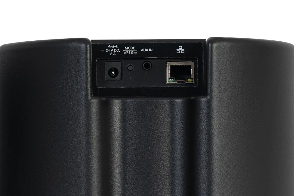 - Aktívny reproduktor má na sebe WPS tlačidlo pre párovanie a LAN (RJ45) konektor pre pripojenie do siete