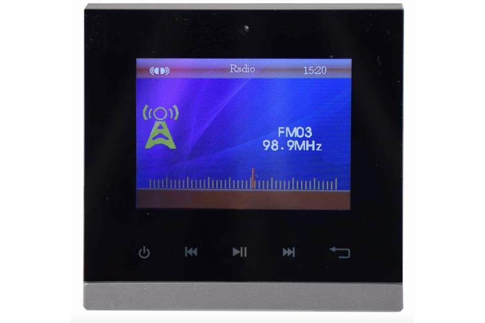 GLEMM PA580 stenový prehrávač so zosilňovačom na ozvučenie malých priestorov, zabudovateľný do steny • MP3 prehrávač s dotykovým 2.8″ farebným grafickým LCD displejom, FM tunerom a vstavaným 2-kanálovým digitálnym zosilňovačom s výkonom 2x25W • K prehrávaču dodávané IR diaľkové ovládanie • Vhodný pre ozvučenie menších priestorov bez nárokov na vyššiu hlasitosť posluchu