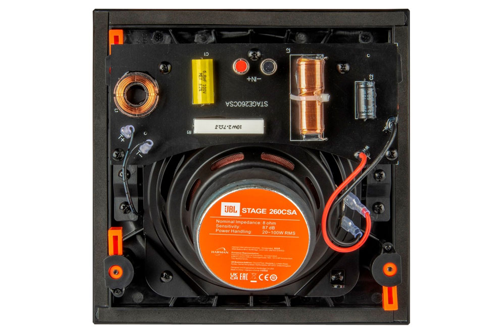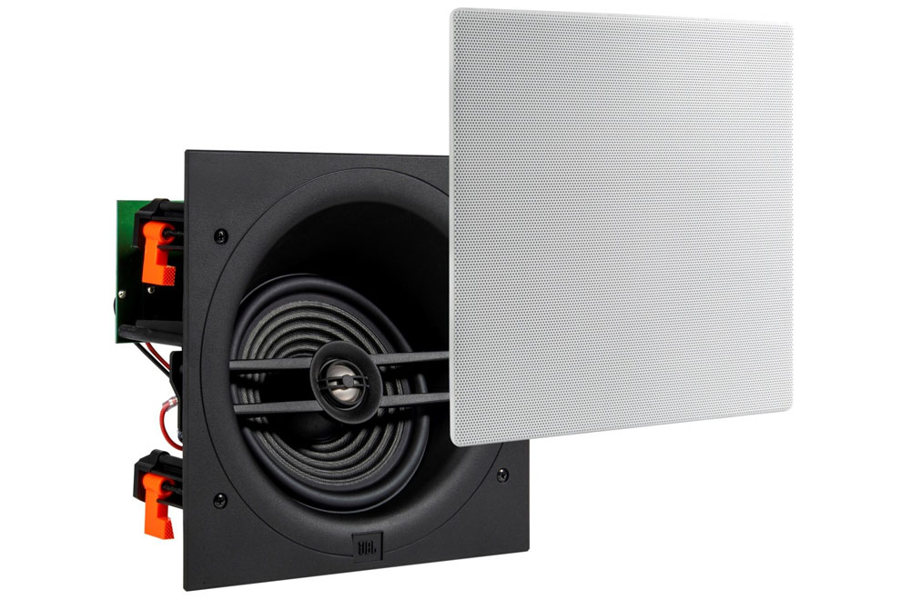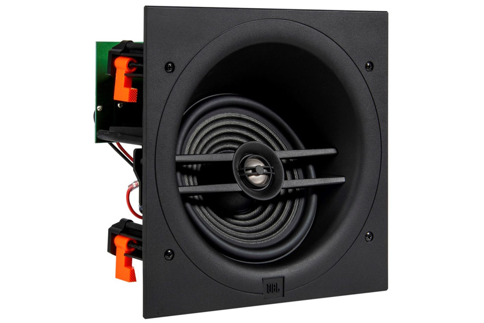 - JBL Stage 260CSA – 2-pásmový 6,5″ zabudovateľný reproduktor so širokým rozptylom a štvorcovým tvarom
