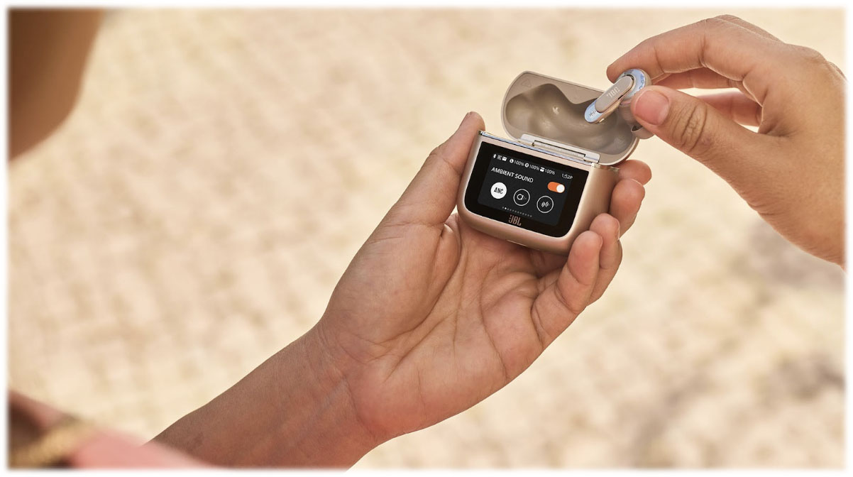 - JBL Tour PRO 3 – skutočne bezdrôtové slúchadlá do uší s adaptívnym ANC a inteligentným odkladacím púzdrom Smart Charging Case s displejom