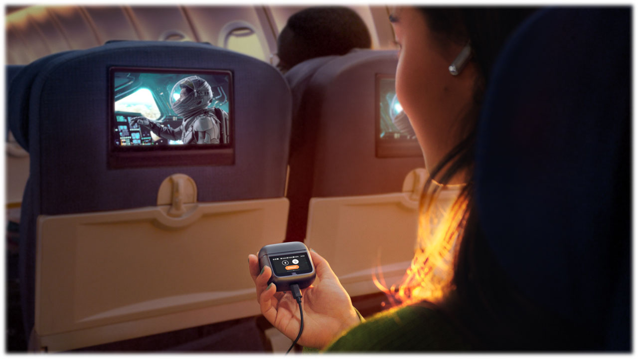 - Počas letu použite puzdro Smart Charging Case™ ako audio vysielač na bezdrôtové pripojenie k palubnému systému (alebo PC) a vychutnajte si filmový zvukový zážitok aj keď ste vo vzduchu