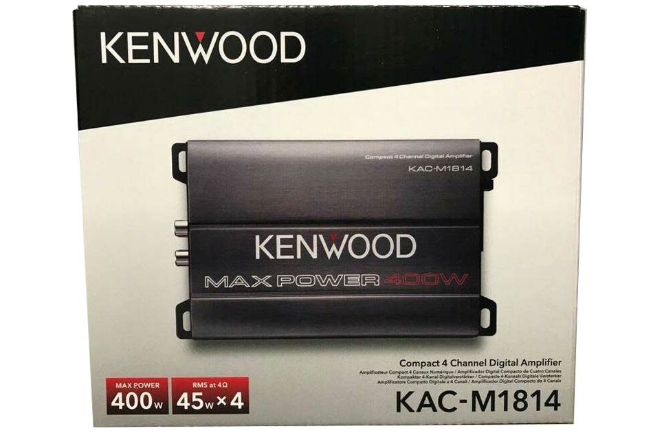 KAC-M1814 – kompaktný 4-kanálový zosilňovač • 4×45 W RMS pri 4 Ohm • Max. výkon: 400 W • Frekvenčná odozva: 20 Hz – 20 kHz (+0 dB, -1 dB) • Vstupná impedancia: 10 kΩ • Impedancia reproduktorov: 4 Ω