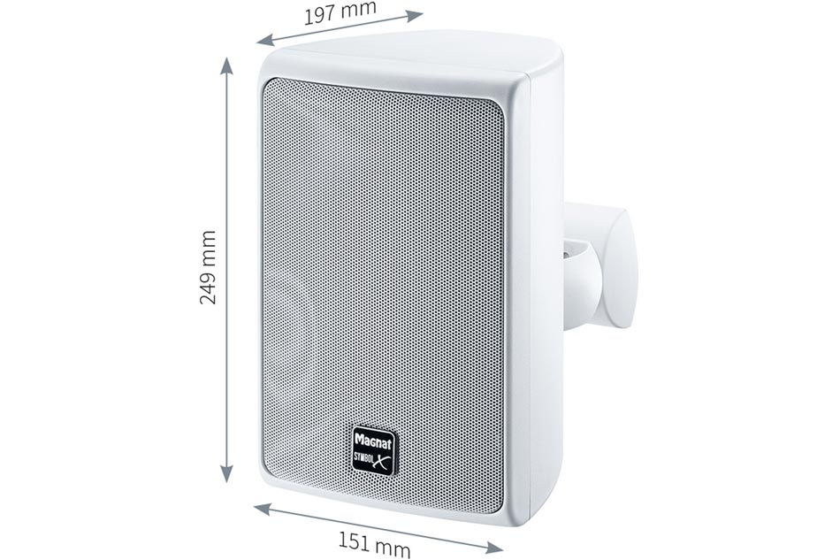 Magnat Symbol X 130 – 2-pásmové závesné reproduktory na ozvučenie interiéru, ako aj exteriéru • Odolné voči striekajúcej vode podľa štandardov IPX5, odolné voči korózii • 2-pásmové • Impedancia 4-8 Ohm • Citlivosť 90dB • Výkon 200W Max / 90W RMS • Vhodné pre: pre ozvučenie interiérov a exteriérov – posilňovňa, altánok, terasa, bazén, reštaurácia, bar, administratívne priestory • Farebné prevedenie: Black / White • Cena za PÁR
