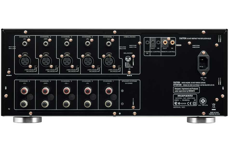 5-kanálový koncový zosilňovač Marantz MM 7055 založený na technológii použitej v modely MM8003 • stabilný do záťaže 4 Ohm, výkon 170W/kanál/6 Ohmov • obvody Current feedback • toroidný transformátor • indikácie výkonu na čelnom dispeji