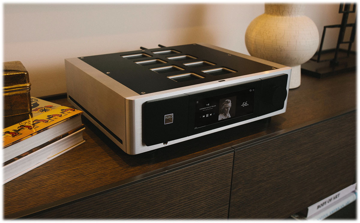 NAD M33 V2 – all-in-one integrovaný zosilňovač so streamerom zo série Masters • 32-bitový / 768 kHz DA prevodník ESS SABRE 9039 PRO s Hyperstream® IV • Nové technológie FOQUS a QRONO pre úpravu časovania pri prevode signálu • Trvalý výkon 200 W a dynamický výkon až 260 W do 8 ohmov • Integrovaná korekcia akustiky miestnosti Dirac Live (Limited Bandwidth) • Moderná platforma BluOS pre streamovanie hudby vo vysokom rozlíšení • Streamovanie pomocou Apple AirPlay 2, Spotify Connect, Tidal Connect a Roon • Obojsmerný Qualcomm aptX HD Bluetooth • Digitálna aj analógová konektivita vrátane HDMI eARC pre pripojenie k TV • Vyhradený predzosilňovač pre gramofóny s MM alebo MC prenoskami • 2x výstup pre subwoofer • 7″ dotykový displej • Hliníkové šasi • Dva sloty MDC2 pre budúce rozšírenie funkcií