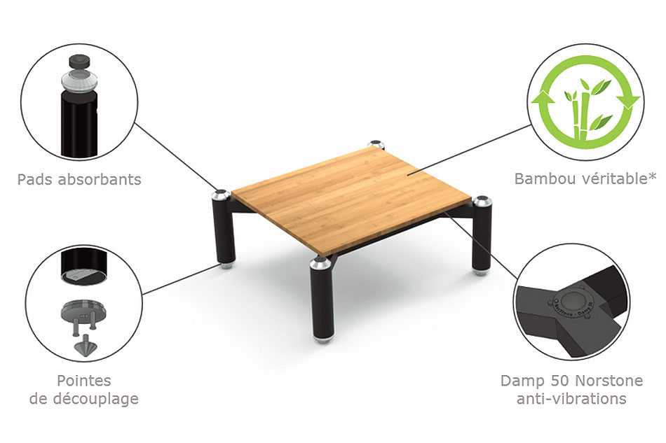 - Každá sekcia je vybavená tlmiacimi antivibračnými podložkami NorStone Damp a odhmotňovacími hrotmi