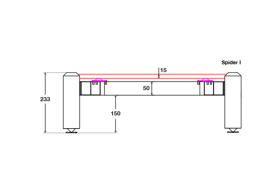 - Potrebnú výšku medzi policami získate použitím vhodného modulu: medzipolicový priestor je uvedený podľa jednotlivého typu: Spider 1: 150mm / Spider 2: 180mm / Spider 3: 280mm