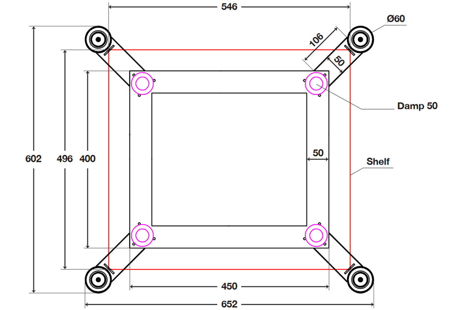- Spider Base sa dá využiť ako základná polica stolíka, ale aj pod koncové zosilňovače, alebo na umiestnenie reproduktorov (oddelenie od zeme)