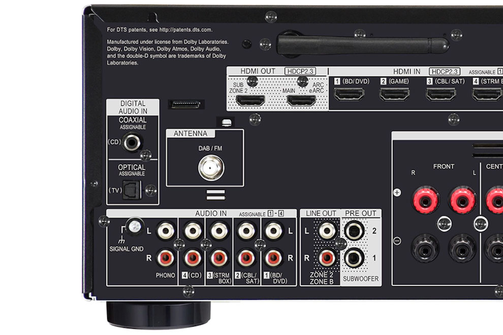 - Podpora Dolby Atmos, Dolby Surround Upmixer, DTS:X, Neural:X Upmixer, Dolby Atmos Virtualizer, virtuálny DTS:X