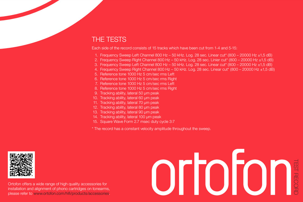 Ortofon Stereo Test Record LP – 15-stopový testovací záznam pre dokonalé nastavenie prenosky • Navrhnutý tak, aby vám umožnil otestovať váš HiFi systém v tom najprirodzenejšom zvukovom prostredí • Šeciálne testovacie signály vyvinuté na analýzu výkonu prenosky, ako aj jeho interakcie s vaším ramenom a gramofónom